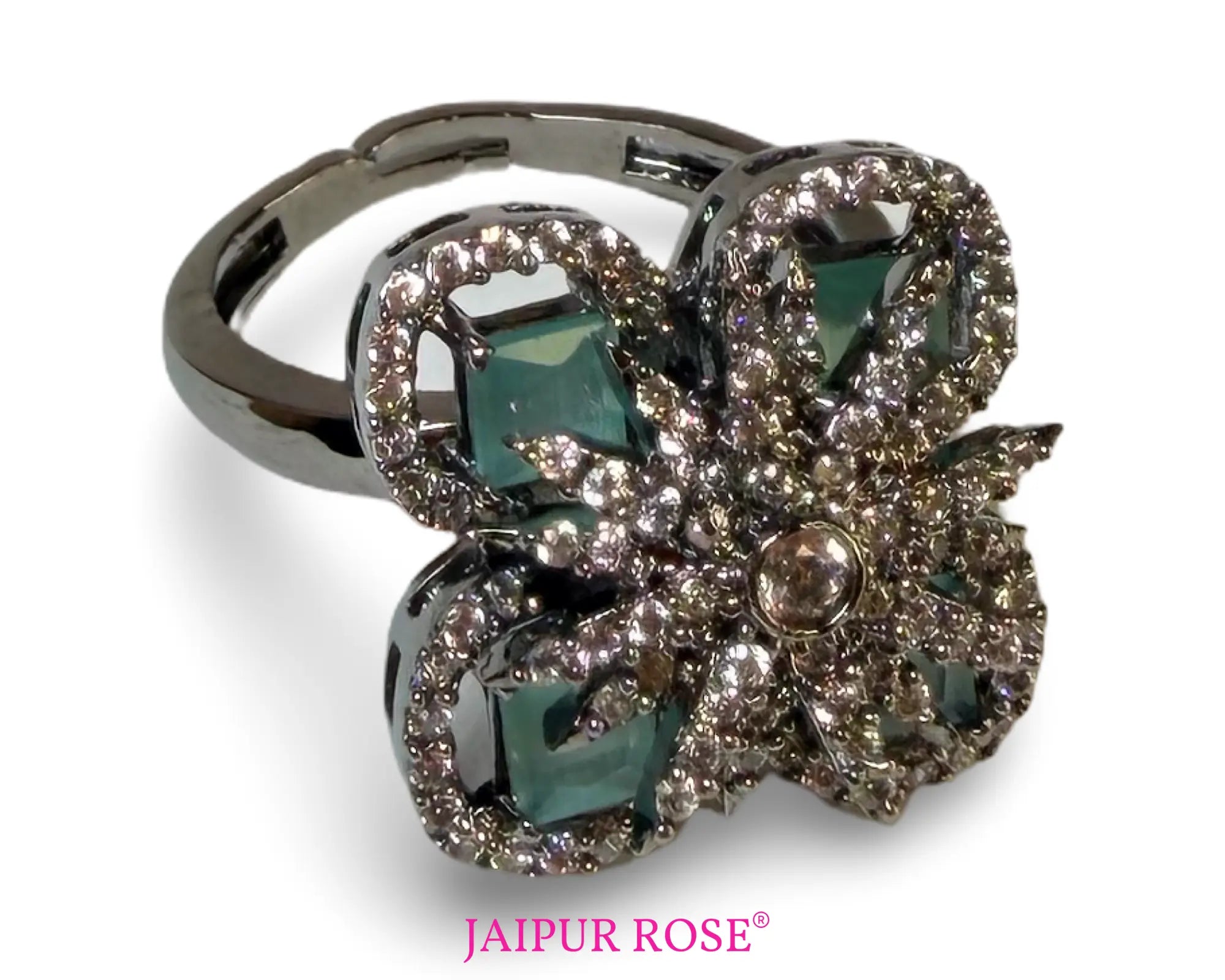 Safa Oxidized Silver With Mint CZ Ring | Modern South Asian Jewellery