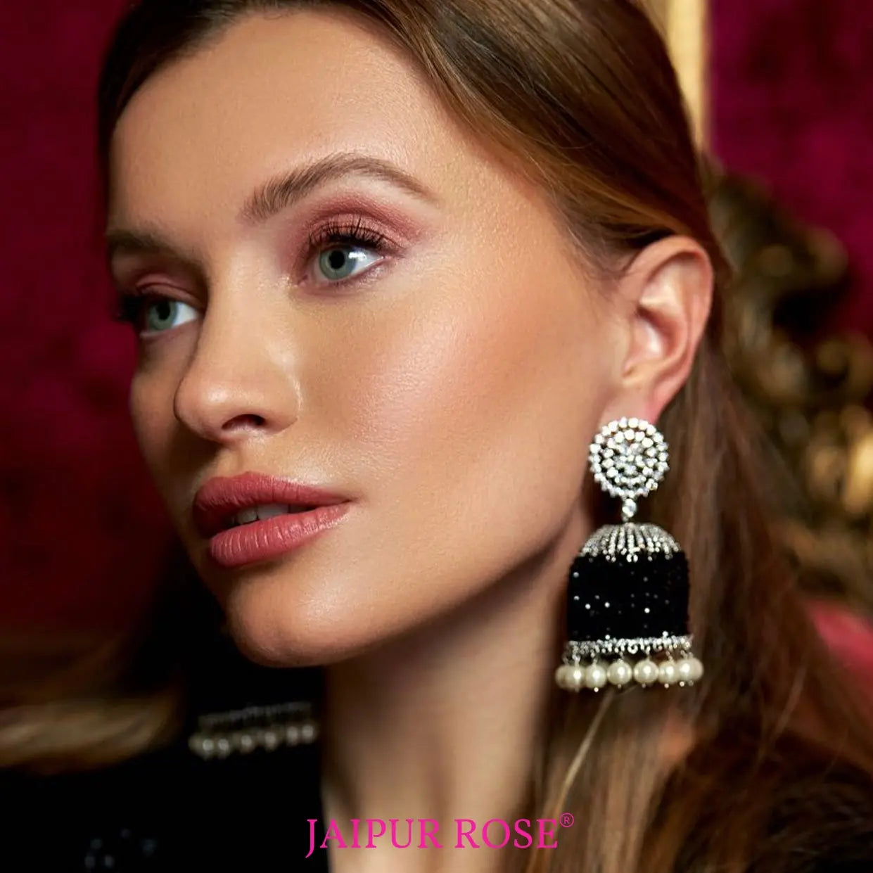 Bipasha Onyx Black Beaded Jhumkas | Jaipur Rose Desi Jewelry Store USA