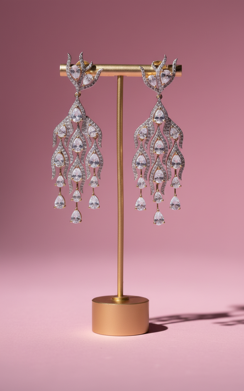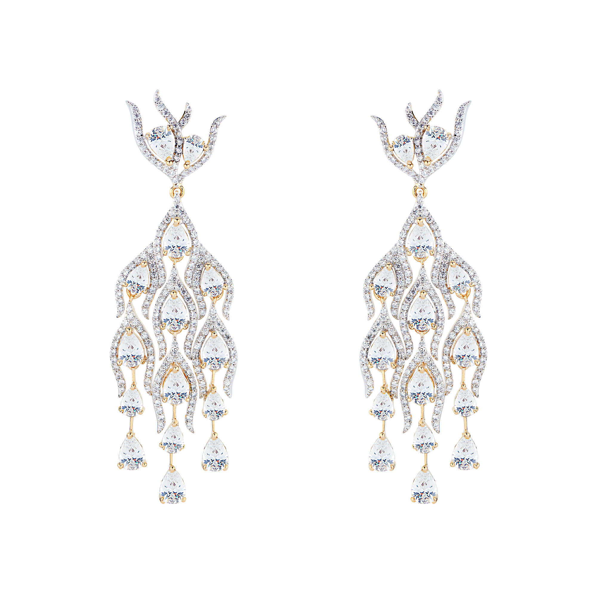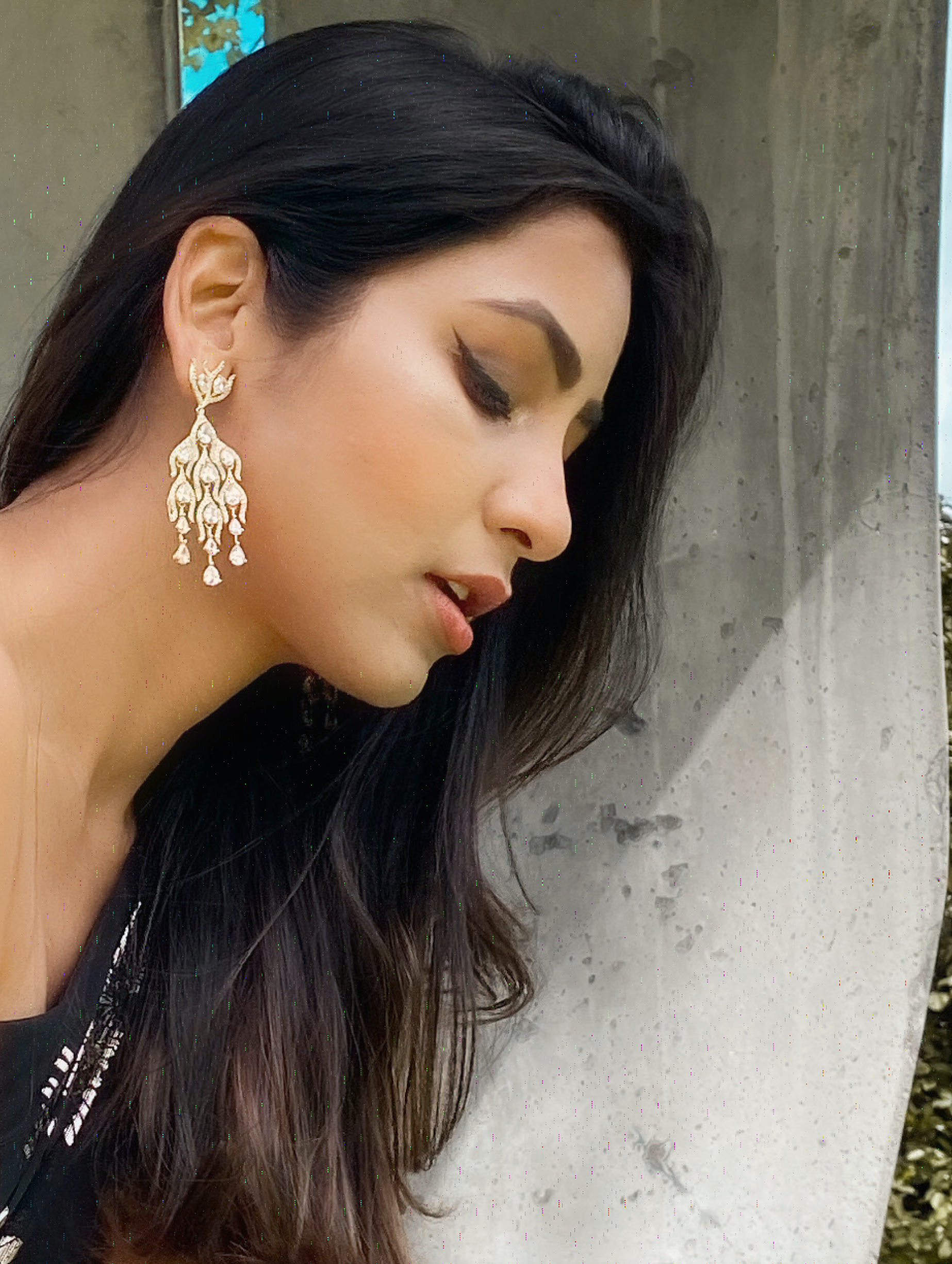 Alizey Two Toned CZ Chandelier Earrings | Modern South Asian Jewelry By Jaipur Rose