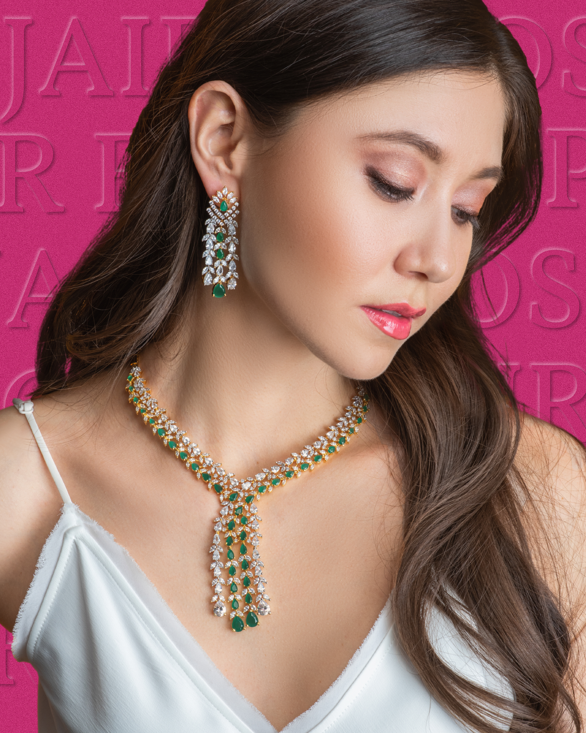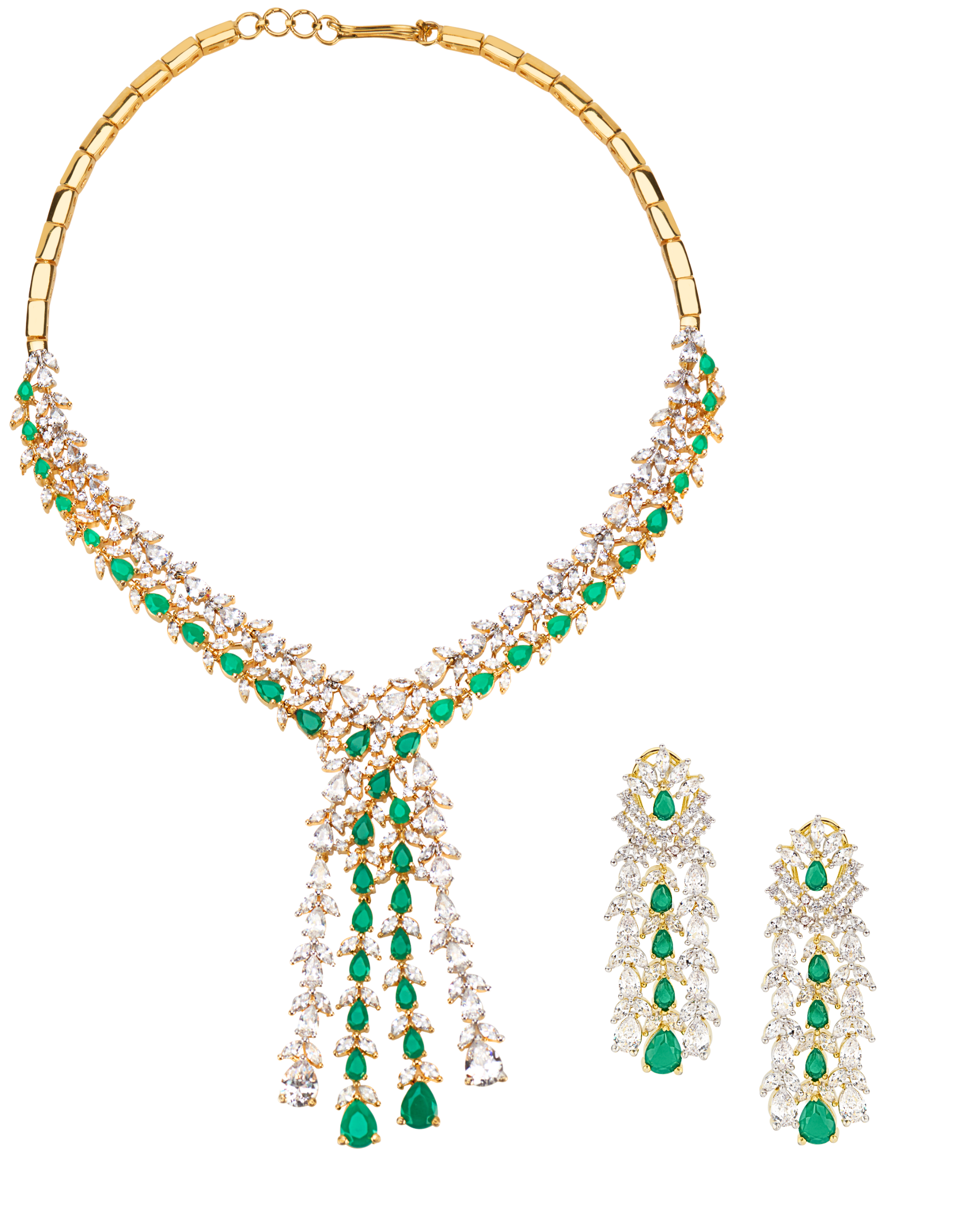 Ava Emerald Green Two Toned Yellow Gold Plated CZ Necklace & Earring Set | Modern Desi Jewelry By Jaipur Rose