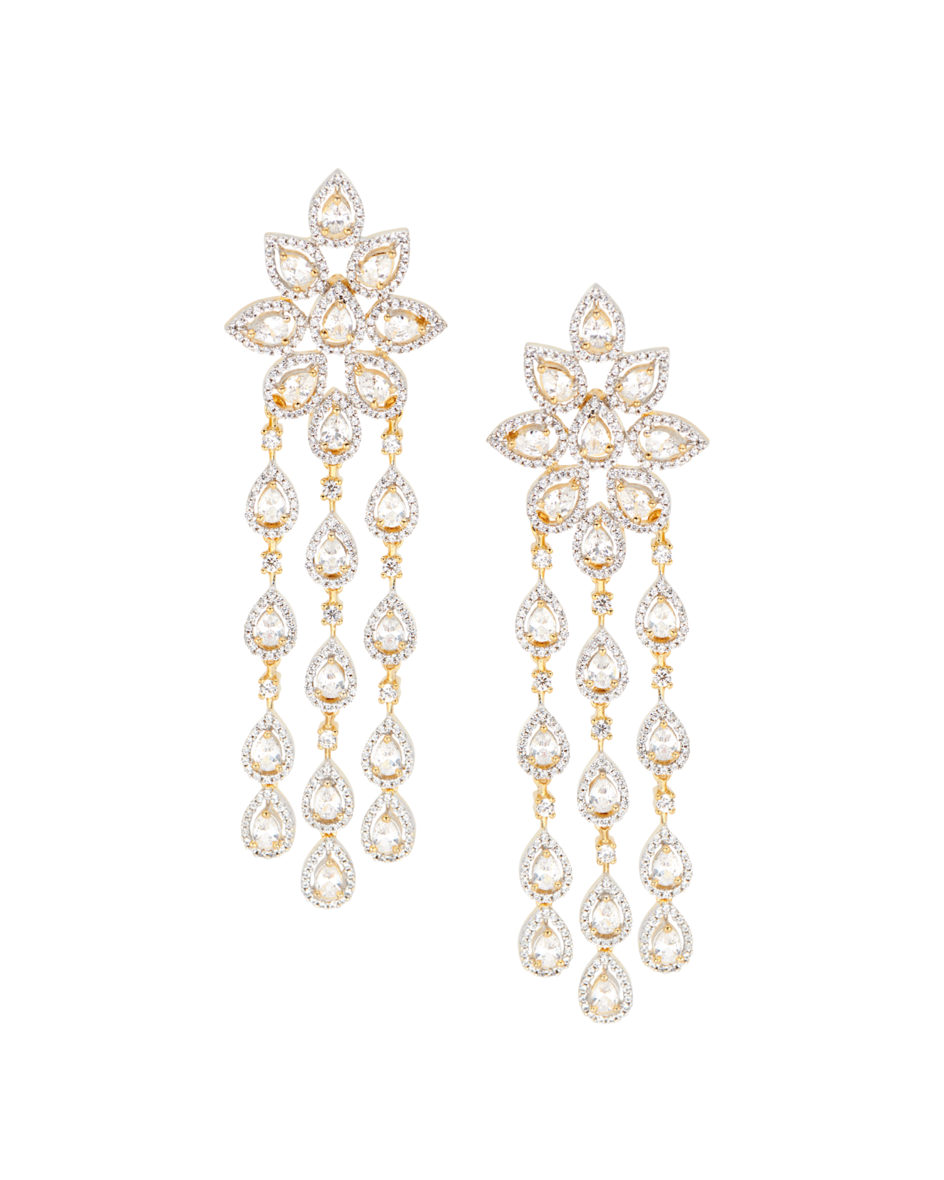Kimaya Two Toned Yellow Gold Plated CZ Chandelier Earrings | Modern South Asian Jewelry By Jaipur Rose