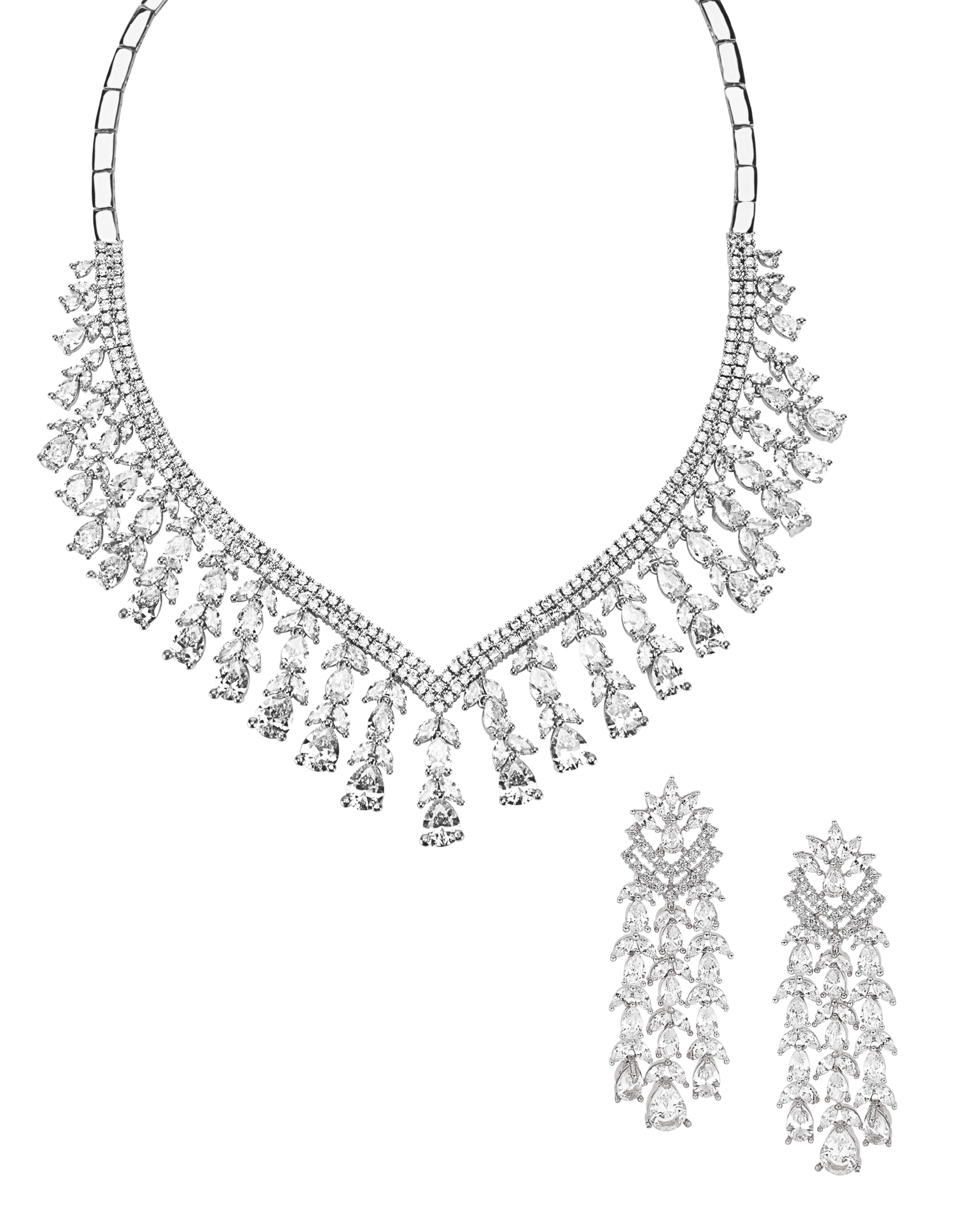 Yash White Gold Plated CZ Necklace & Earring Set | Modern Indian Jewelry By Jaipur Rose
