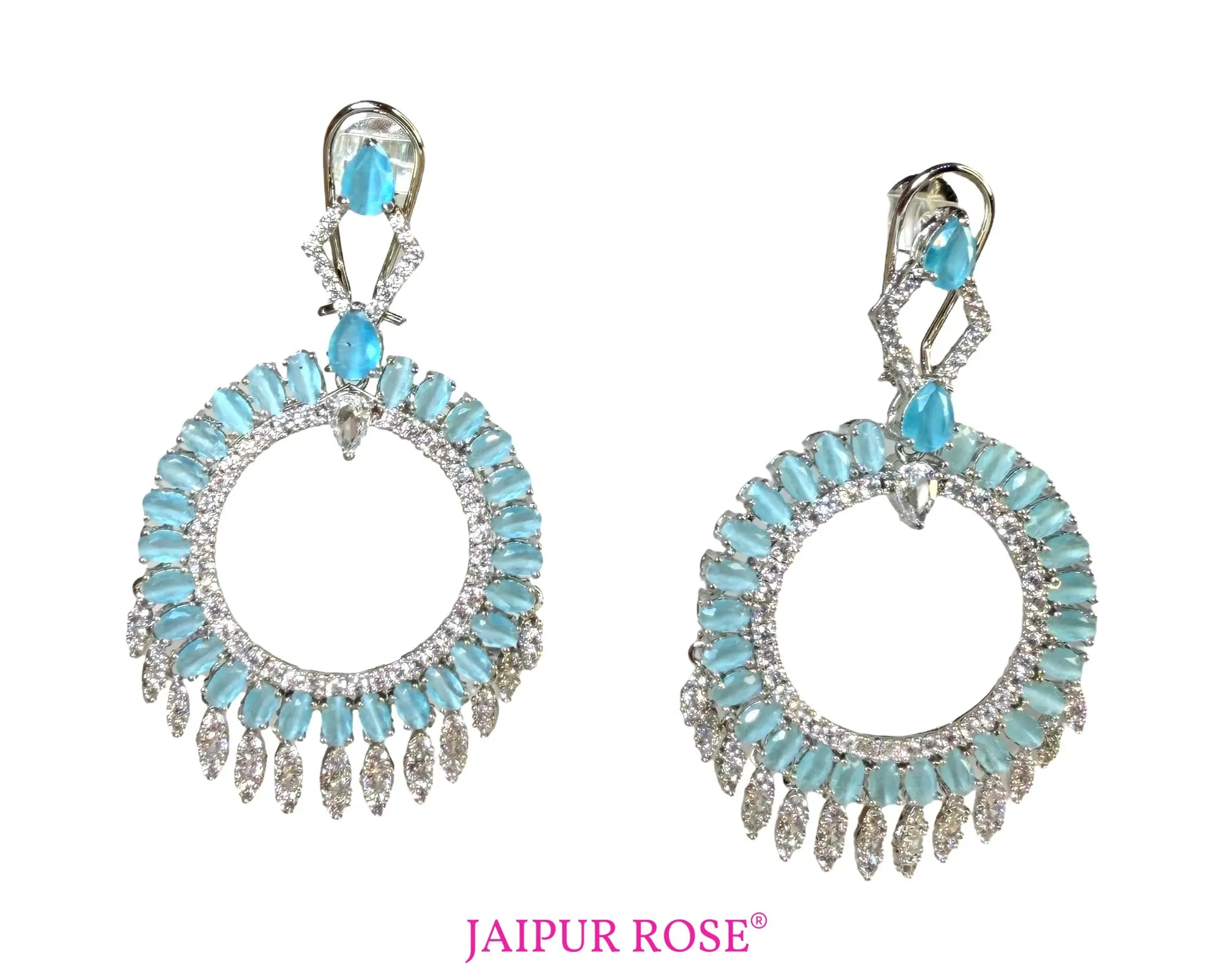 Avani White Gold Plated Aqua Blue CZ Earrings | Modern South Asian Jewellery
