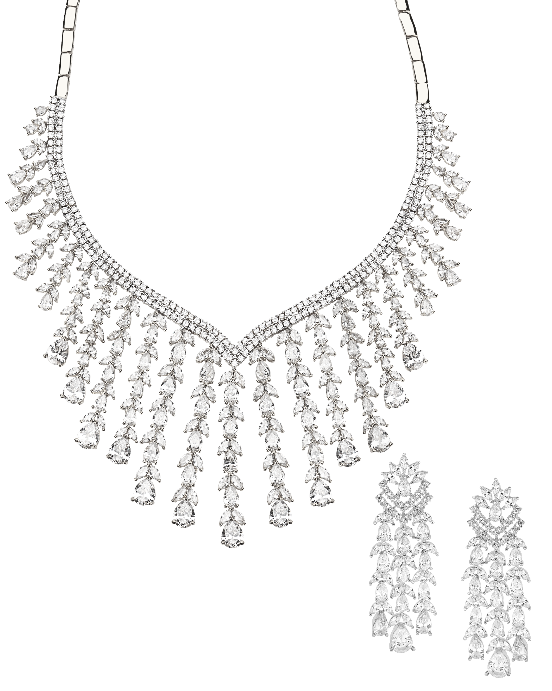 Aysha White Gold Plated CZ Necklace & Earring Set | Designer Costume Jewelry By Jaipur Rose
