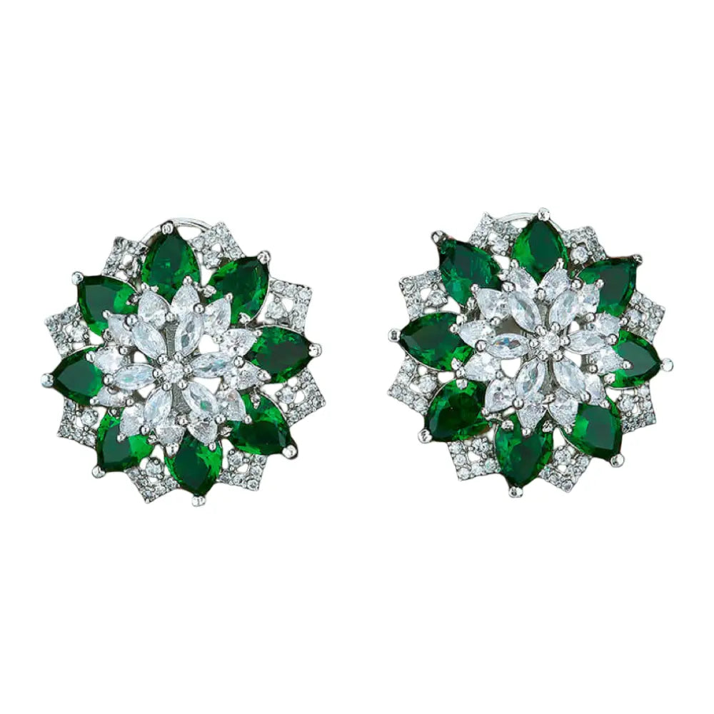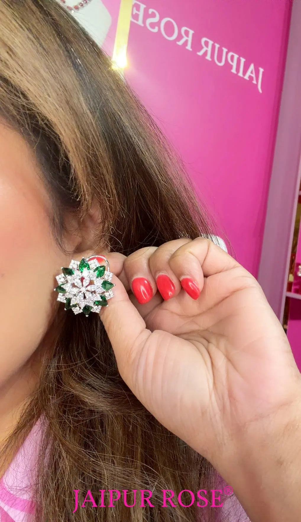 Hansika White Gold Plated With Emerald Green CZ Stud Earrings | Modern Indian Jewelry By Jaipur Rose