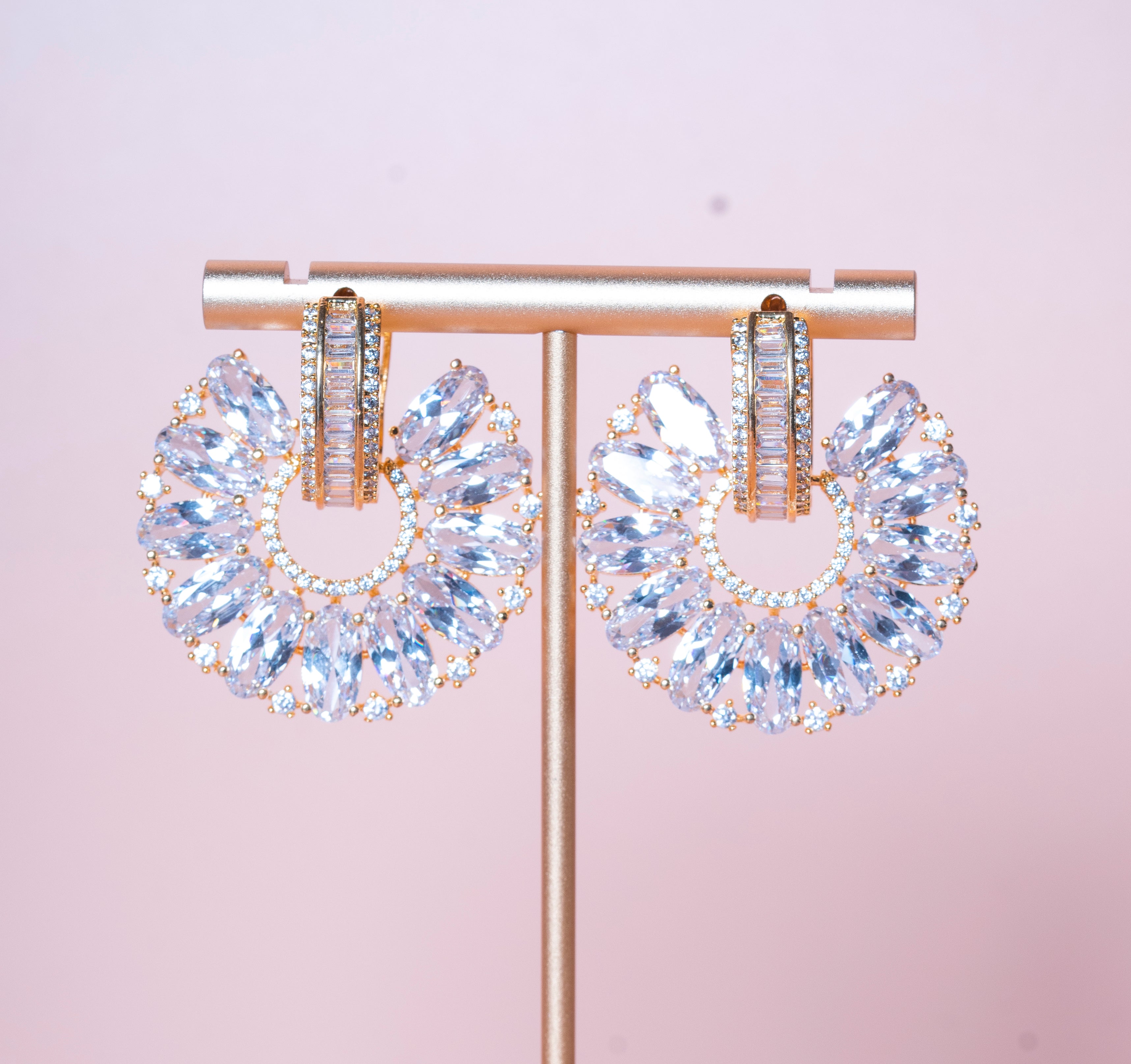 Kim Two Toned Yellow Gold Plated CZ Earrings | Designer Costume Jewelry By Jaipur Rose