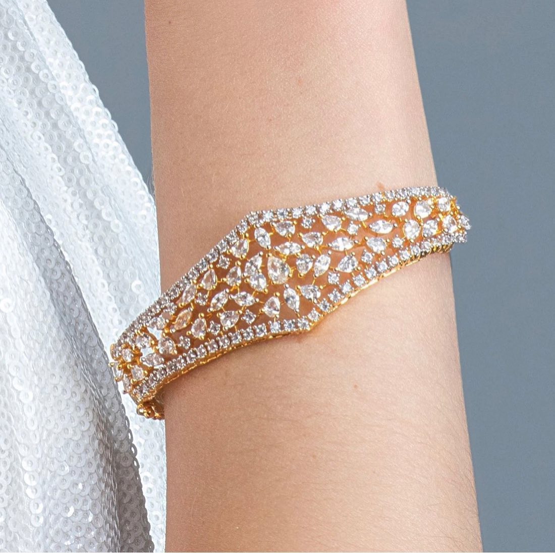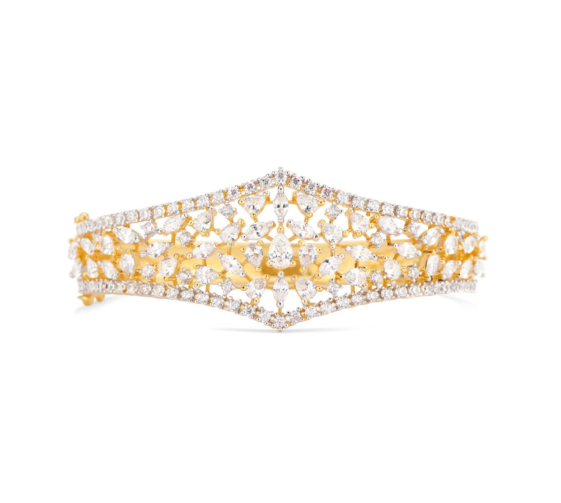 Rani Two Toned Yellow Gold Plated Cz Cuff Bracelet Size 2.6 Openable | Modern Indian Jewelry By Jaipur Rose