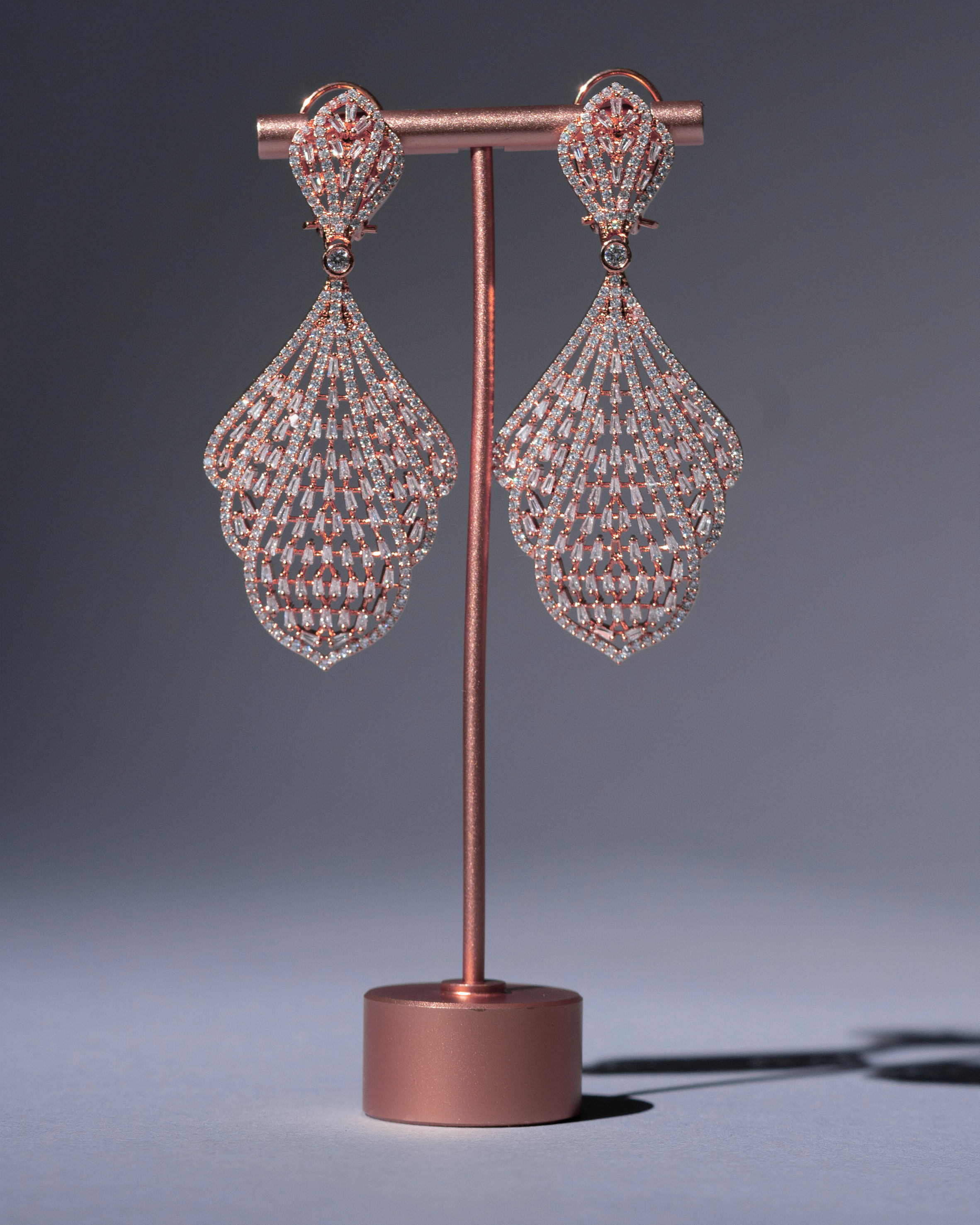 Seychelles Rose Gold CZ Statement Earrings | Modern Indian Costume Jewellery by Jaipur Rose