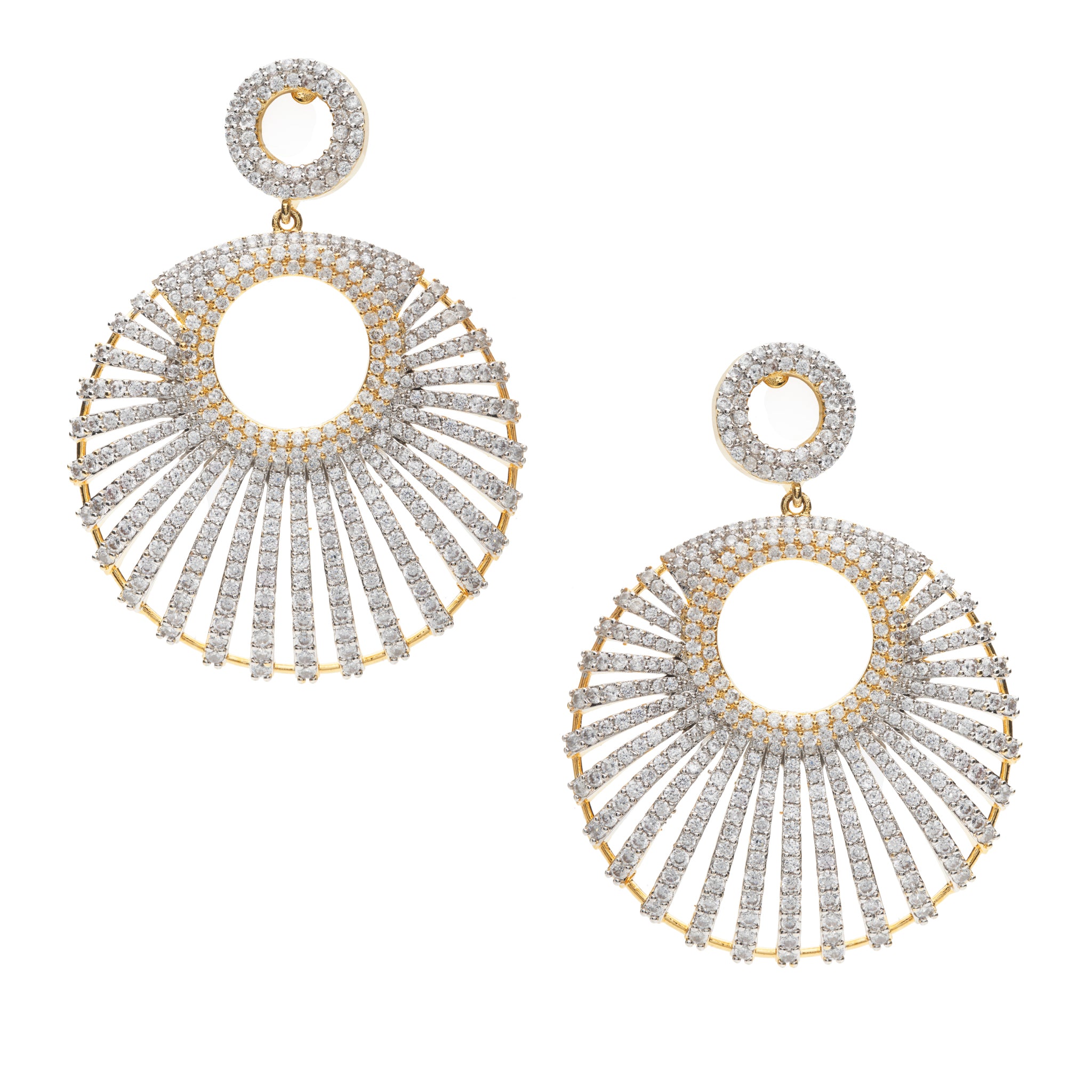 Victoria Two Tone Yellow Gold Plated CZ Statement Earrings | Modern South Asian Jewelry By Jaipur Rose