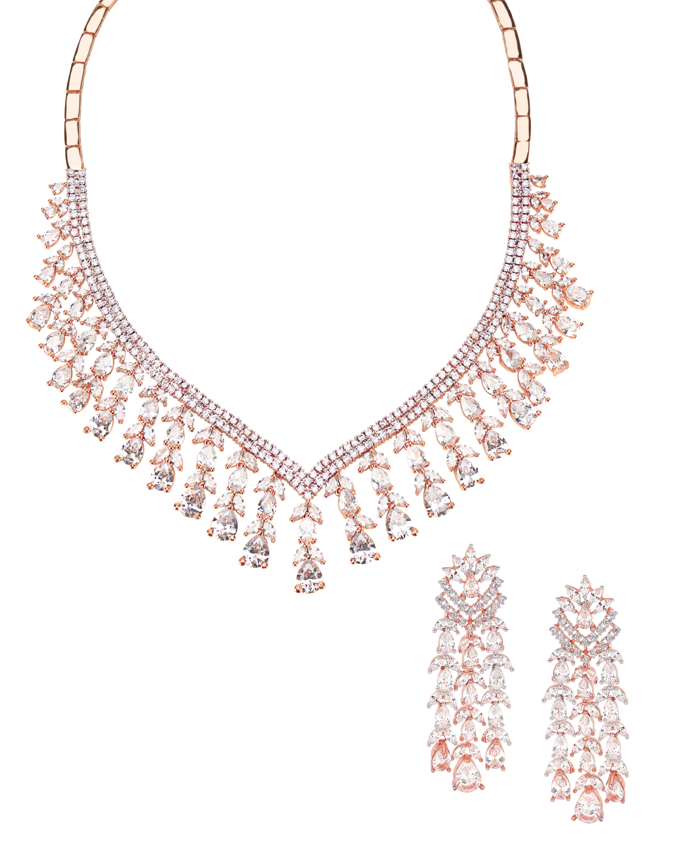 Yash Rose Gold CZ Necklace & Earring Set | Modern South Asian Jewellery