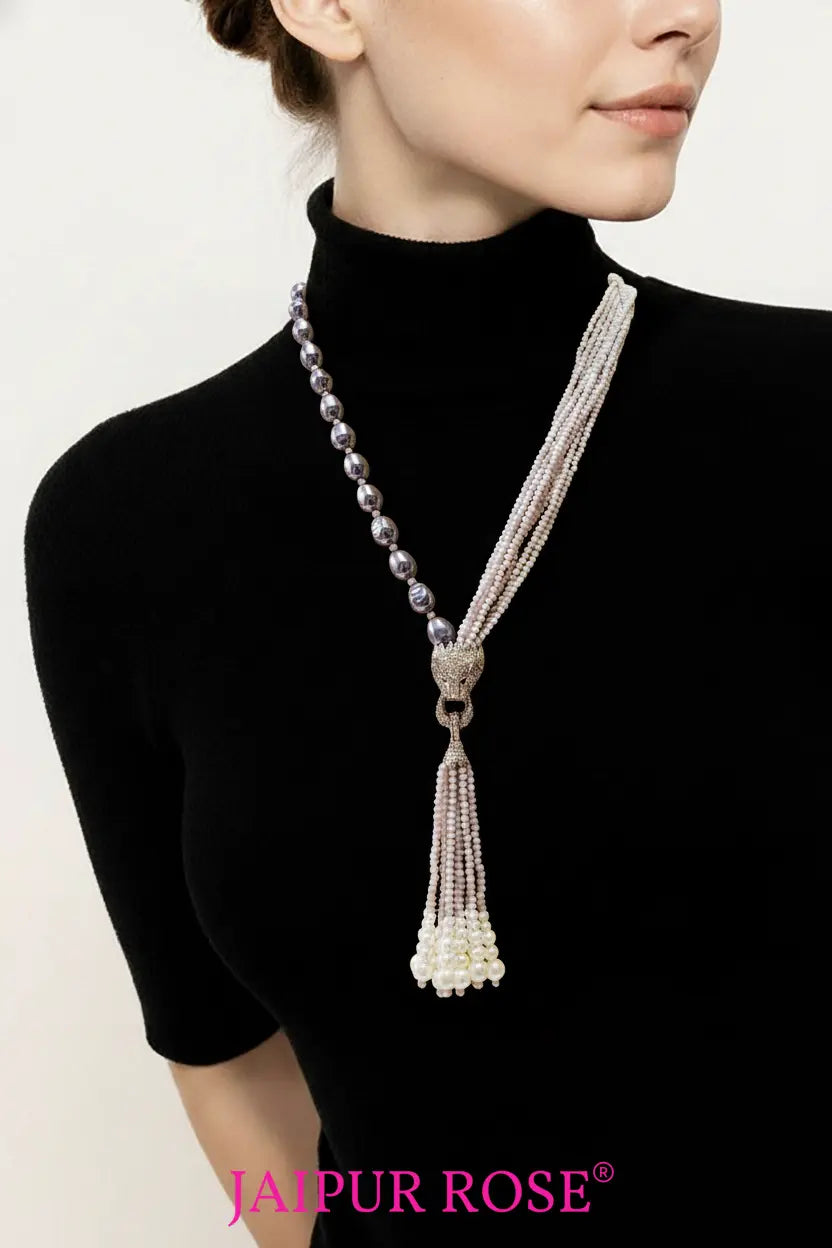 Yun Panther Pendant Mala Light Lavender | Indian Jewelry Online USA Jaipur Rose